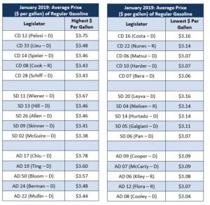 Highest/Lowest Fuel Prices by Legislative District: