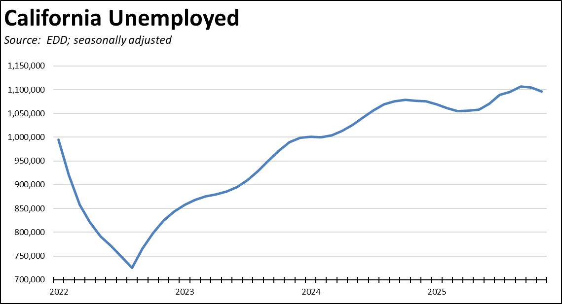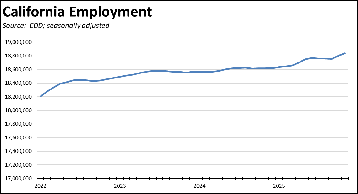 The Center for Jobs and the Economy has released our initial analysis of the December employment and labor force data. The EDD and BLS releases are again on different schedules. Data for the other states will be addressed in our Full Jobs Report after it is released by Bureau of Labor Statistics next week. For additional information and data about the California economy visit www.centerforjobs.org/ca. Note that the data begins to reflect the annual revision process, with the US labor force numbers revised beginning in January 2021. The job numbers will be revised beginning with the release of January 2026 estimates.