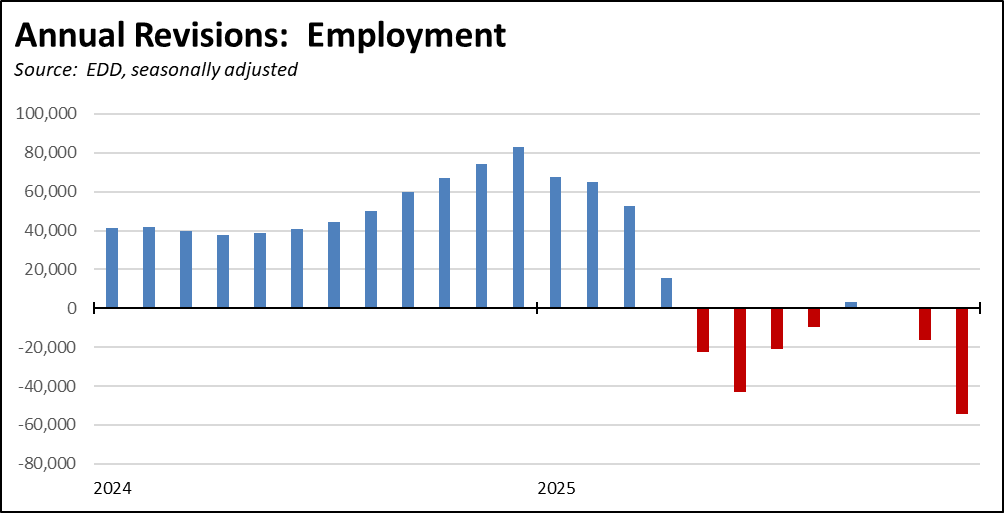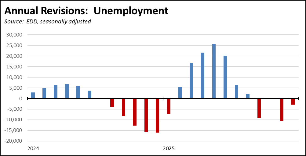 The January data includes the release of the annual revisions for the state and Los Angeles MSA, with updates to both the labor force and jobs data for 1990-2025 reflecting more current data along with revisions to the estimation models. Revisions for the remaining subareas of the state will be included with the February data.