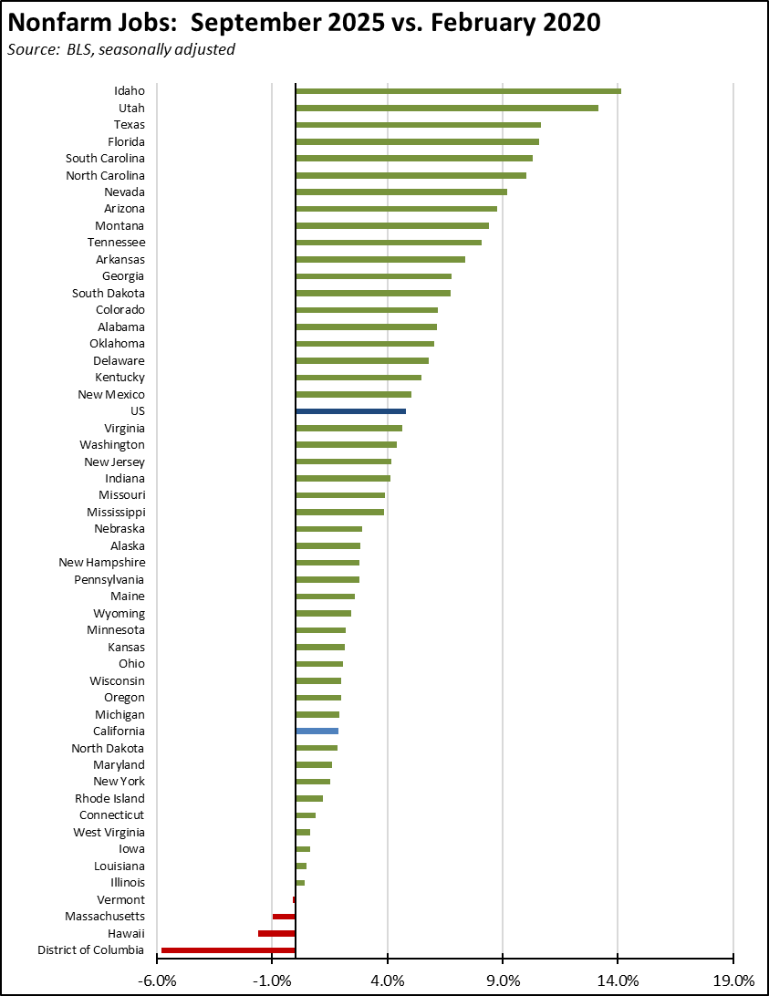- Recovery Progress: CA Nonfarm Jobs vs. Other States