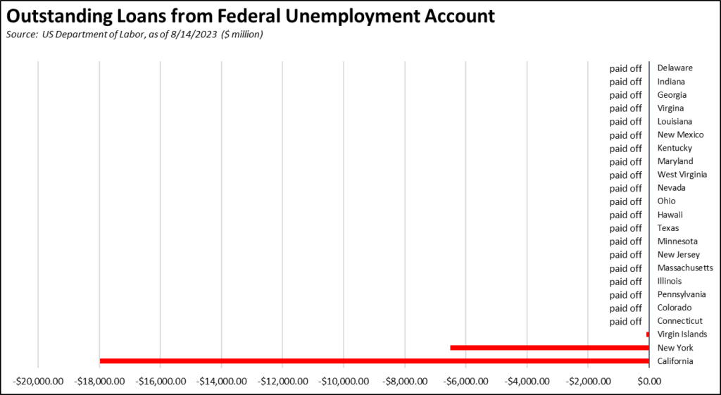 The program as it functions in California already is stressing the fiscal solvency of this critical benefit as the result of past expansions of benefits without proper consideration to how they were to be funded, a trend that mushroomed during the pandemic when the state relied on this program to offset the impact on workers from the job closures. California’s unemployment insurance fund debt was $18.0 billion in the latest report for August 14. By failing to address this debt, the state budget ensures that employers will continue paying the state UI tax at its highest rate schedule. Employers also will be subject to an increase in the federal UI tax, growing at an additional 0.3% to 2.7% annually until the federal debt is paid off.