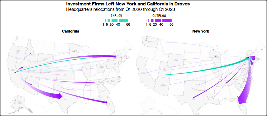 Source: Bloomberg, New York and California Each Lost $1 Trillion When Financial Firms Moved South, August 21, 2023