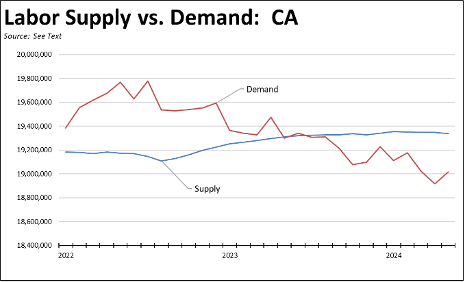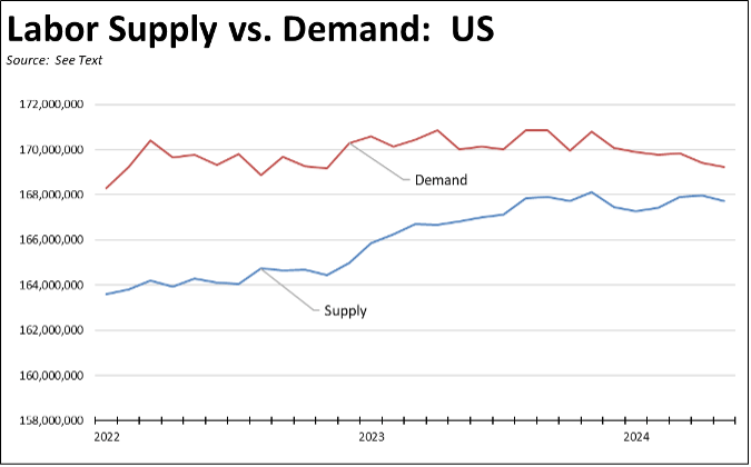 The national economy in contrast although easing still indicates labor shortage conditions, suggesting not only jobs but also wage increases remain more available in other states. Total demand, however, has begun to ease in the past few months while supply has remained more level.