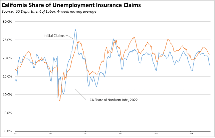 California’s reliance on this program as a substitute for earned wages also remains well above its total share of the national economy.