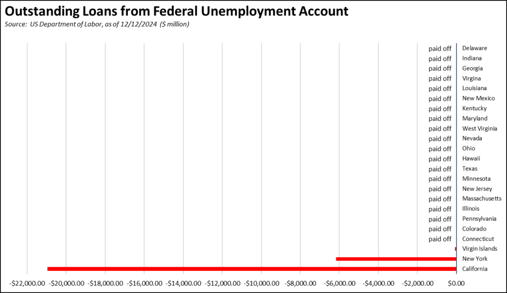 All other states other than New York have paid off their pandemic period debt, in large part using the federal funds provided for that purpose. California instead chose to use those funds on other expenditures.