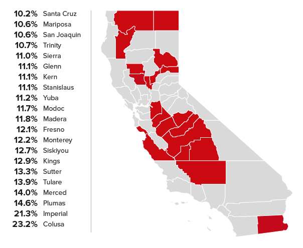 21 Counties Remain in Double-Digit Unemployment, Up from a Revised 17 in December