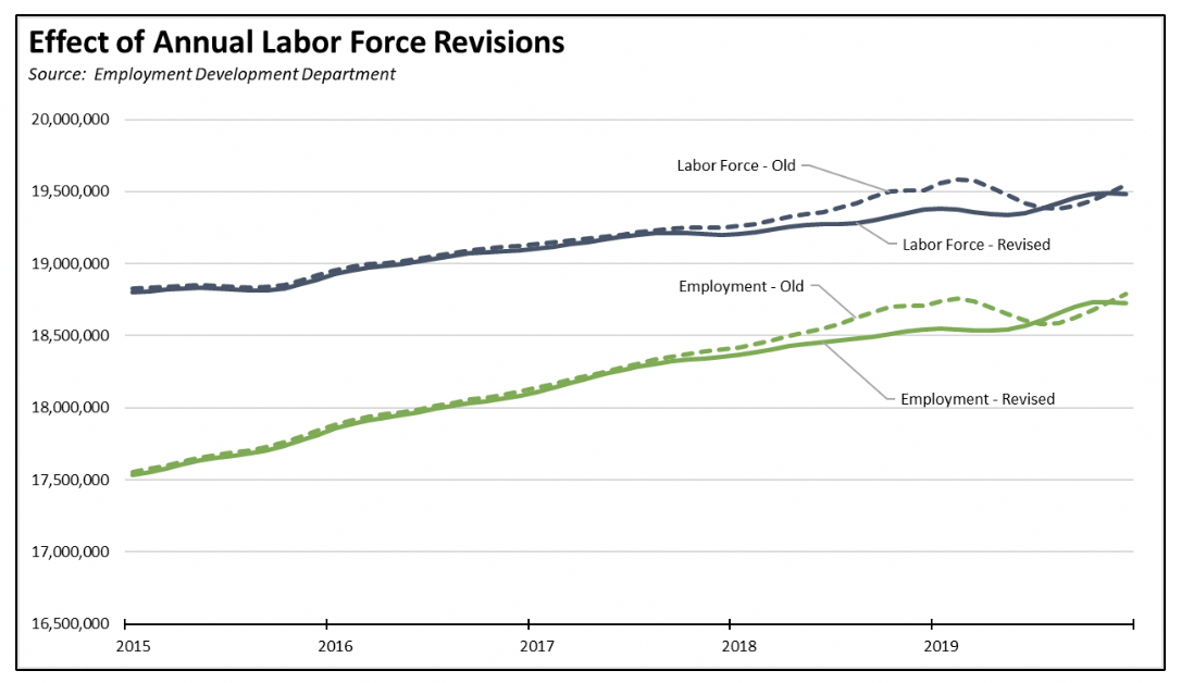 As indicated below, the revisions are relatively minor compared to those of prior years. In general, the revisions decreased the labor force and employment numbers for 2018, but slightly raised the estimates for the second half of 2019.