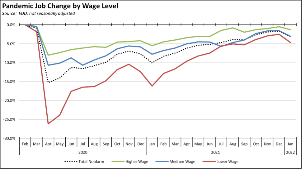 In the seasonally adjusted numbers, California employment remains 773,600 (4.1%) below the pre-pandemic level in February 2020; the rest of the states combined were 0.7% below.