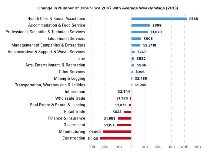 8 Industries Remain Below 2007 Pre-Recession Job Levels; 11 Above