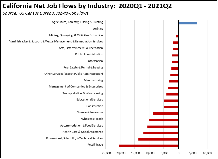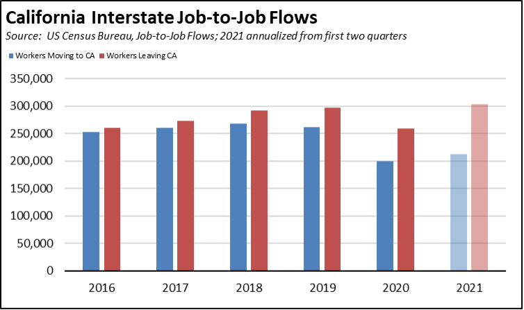 The recent release of the 2021 second quarter Job-to-Job Flow data suggests that California did have the workers, but that an increasing number are instead choosing to move and take jobs in other states.