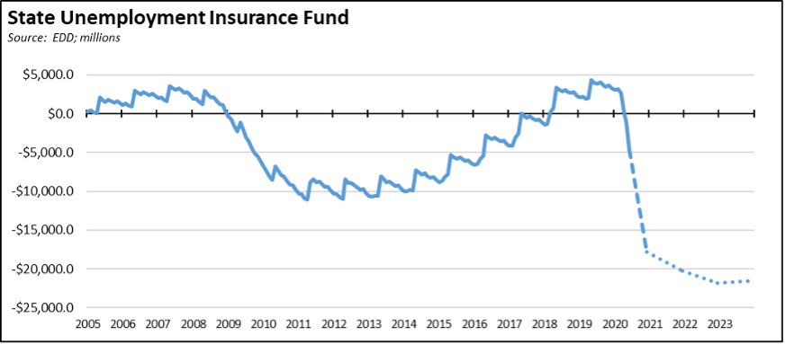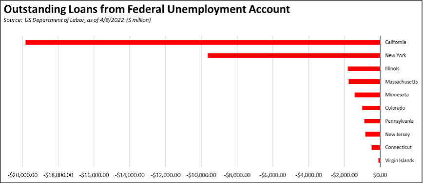 As of April 8, California’s unemployment insurance fund debt was $19.8 billion, or 54% of the total owed by all the states and territories.
