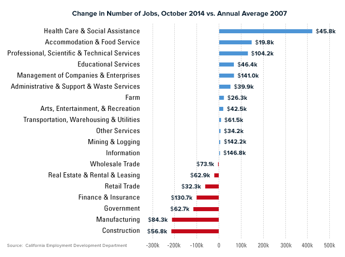 - 7 Industries Remain Below 2007 Pre-Recession Job Levels; 12 Above