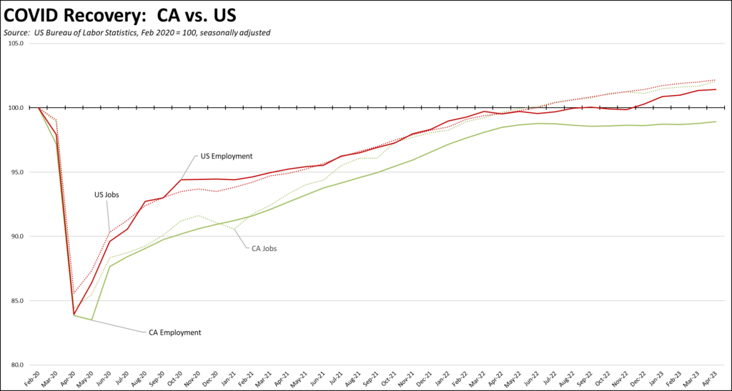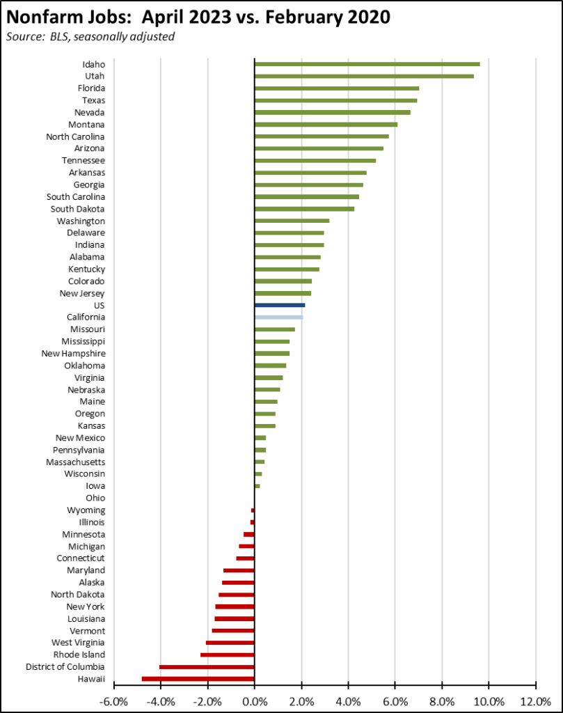 - Recovery Progress: CA Nonfarm Jobs vs. Other States