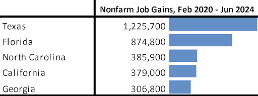 Compared to the pre-pandemic peak, California has now gained a net 379,000 nonfarm jobs, still in 4th place among the states and DC.