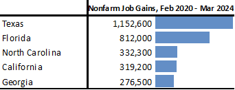 For the US as a whole, nonfarm jobs rose 303,000 in March.