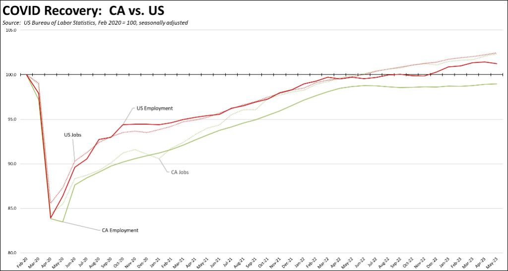 - Recovery Progress: CA Nonfarm Jobs vs. Other States