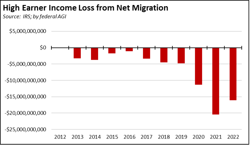 On a cumulative basis, the 2022 losses bring the running 5-year high earner running total to an estimated $5.3 billion reduction in personal income tax, or an amount just below the business tax increases currently contained in this year’s budget bill.