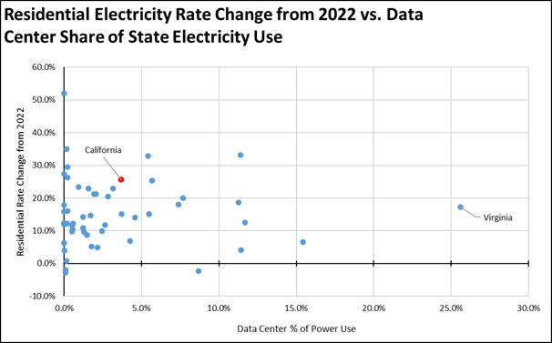 Alternatively, states with large data center industries may simply manage electricity systems more carefully, prioritizing cost control and reliability—unlike California, where renewable mandates are often pursued without sufficient attention to cost impacts.