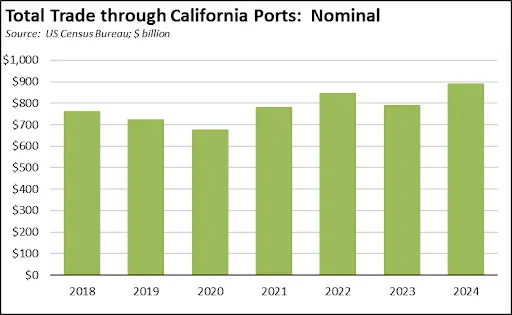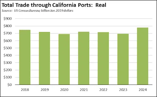 Total California destination goods imports grew more sharply by $5.6 billion from December 2023 (up 15.4%).