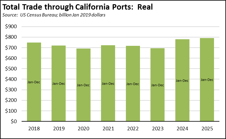 Total California destination goods imports grew $5 billion from December 2024 (up 11.8%).