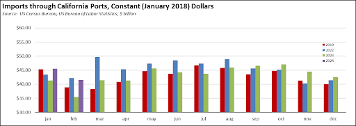Total California destination goods imports rose $2.6 billion from February 2023 (up 8.1%).