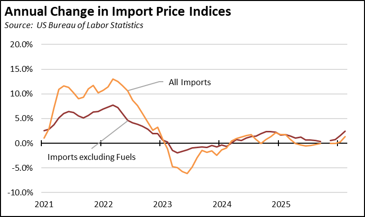 Imports less the more volatile fuels component was only slightly lower, at an annualized rate of 13.5% in February following on January’s 9.6% rise. While the full effect of tariffs was not reflected in import prices through much of last year, this situation is now turning and is likely to be replaced by the impact of fuel costs on trade.
