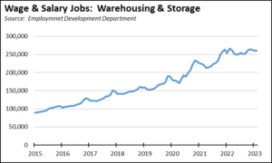 Reflecting a number of factors—including continuing uncertainty over the West Coast port labor talks and uncertainty over a potential downturn later this year—total California destination goods imports were down sharply by $9.7 billion from March 2023 (down 20.5%) in nominal terms. In real terms, however, imports were up 9.7% compared to pre-pandemic March 2019.