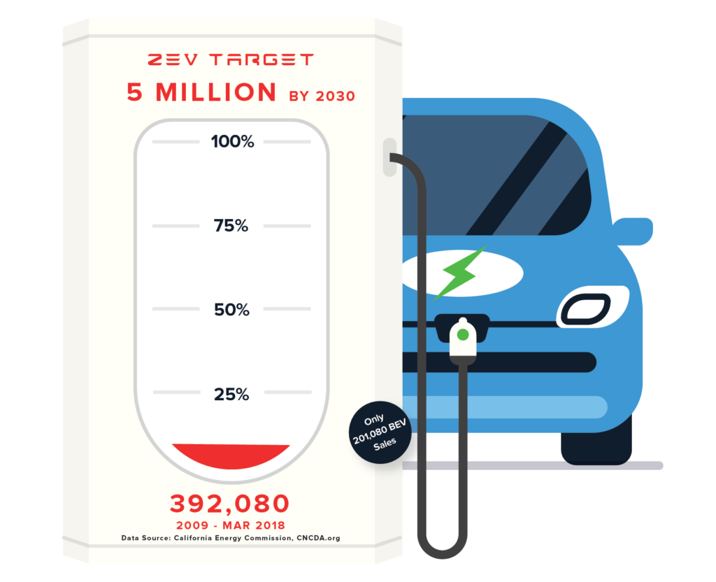 Using this broader interpretation, total PEV sales since 2009 account for 7.8% of the 2030 goal. True ZEV sales (BEVs), however, account for only 4.0%.